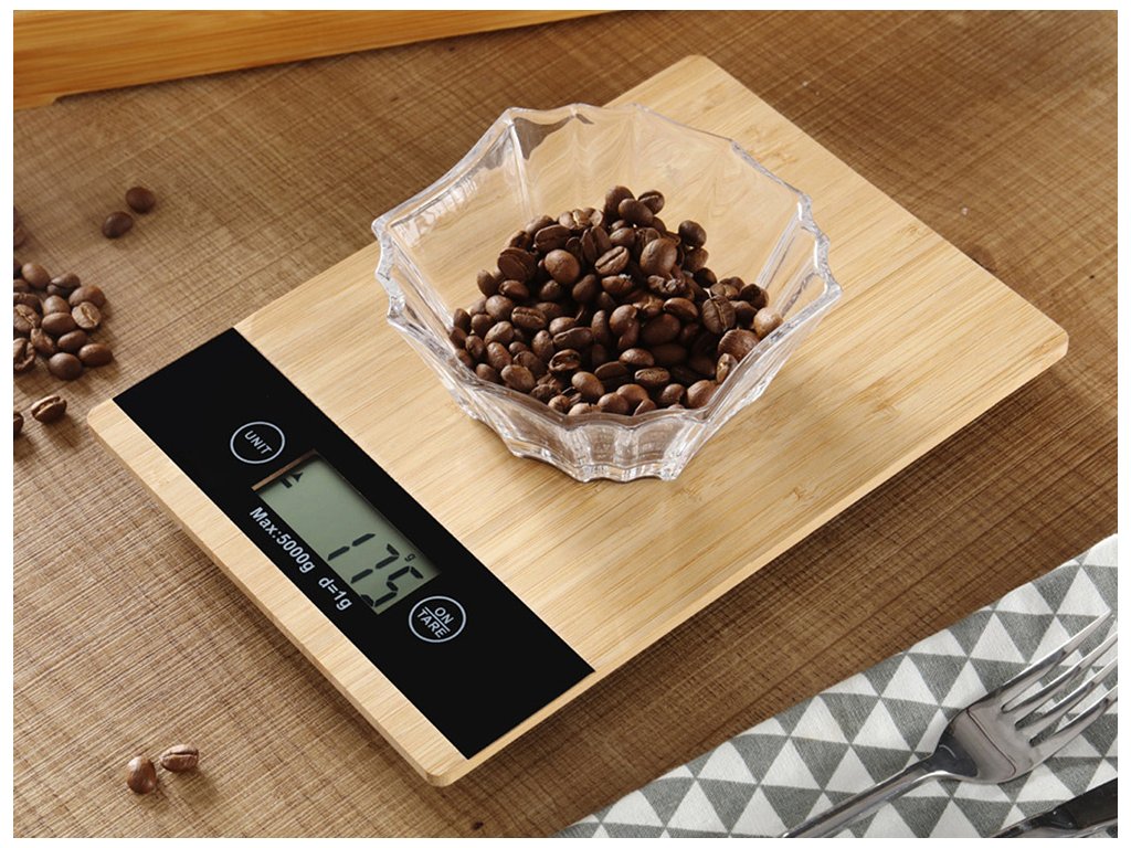 ELEKTRONICKÁ BAMBUSOVÁ KUCHYNSKÁ VÁHA DO 5 KG