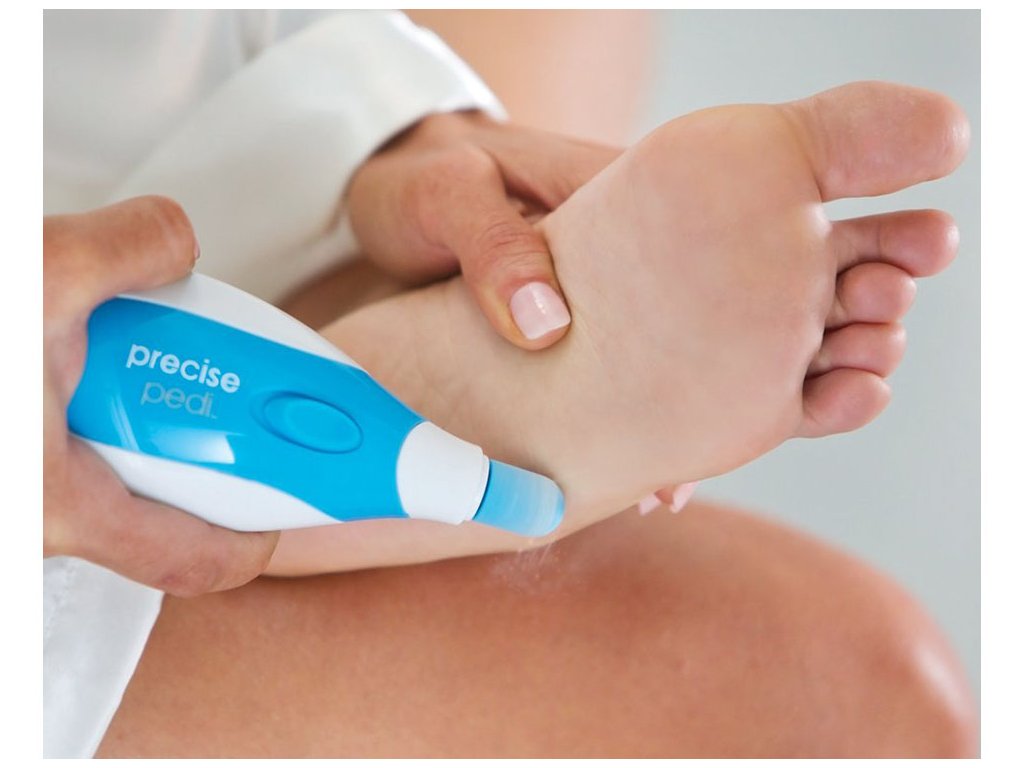 Frézku jednoducho zapnite posunutím tlačidla smerom nahor. Držiac ju v ruke ju nasmerujte na nohy, kde chcete zotrieť epidermis. Pilník pracuje prakticky sám. Neobrusujte epidermu na jednom mieste dlhšie ako 2 - 3 sekundy a nevyvíjajte silný tlak na pokožku.
